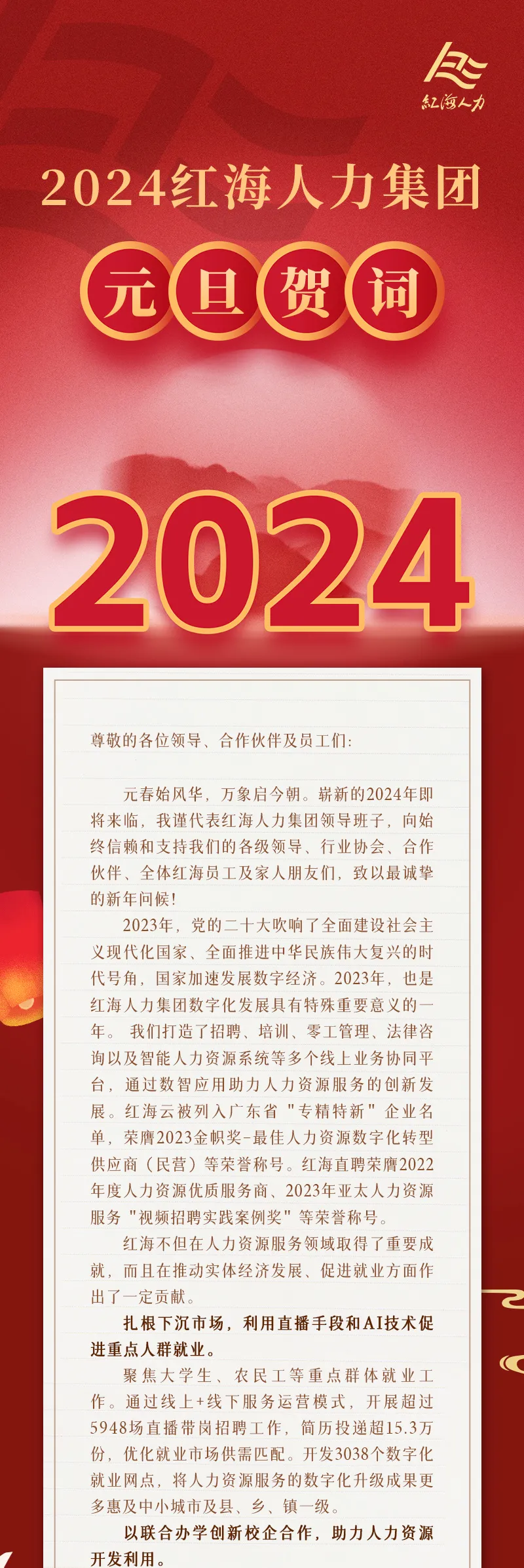 奮楫揚帆 逐夢(mèng)前行——2024紅海人力元旦賀詞